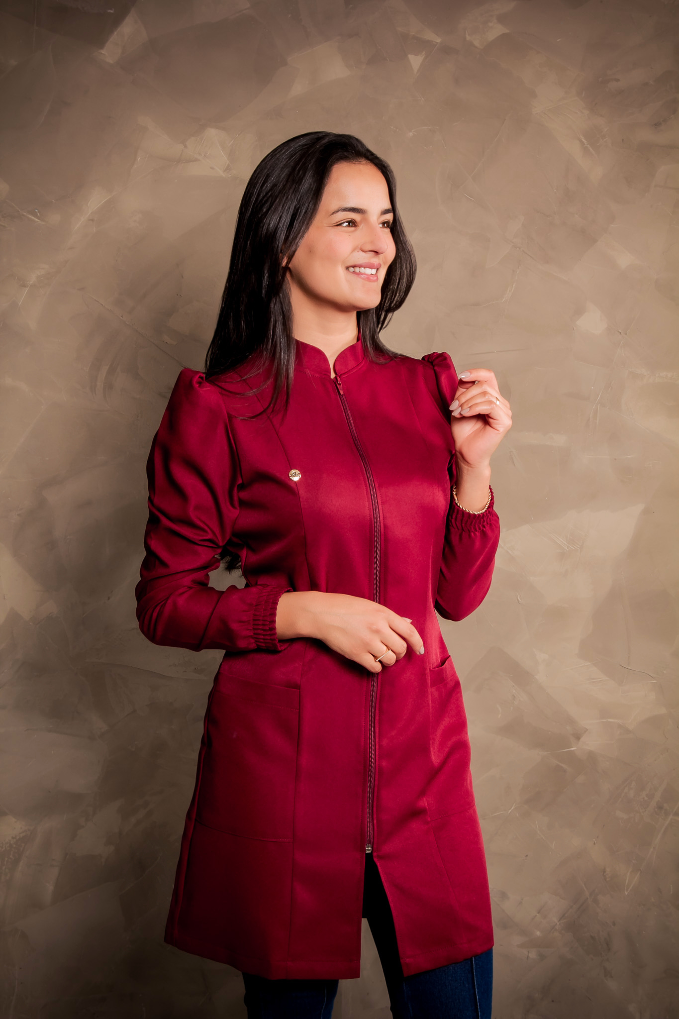 Jaleco Gabrielly manga longa - Bordô