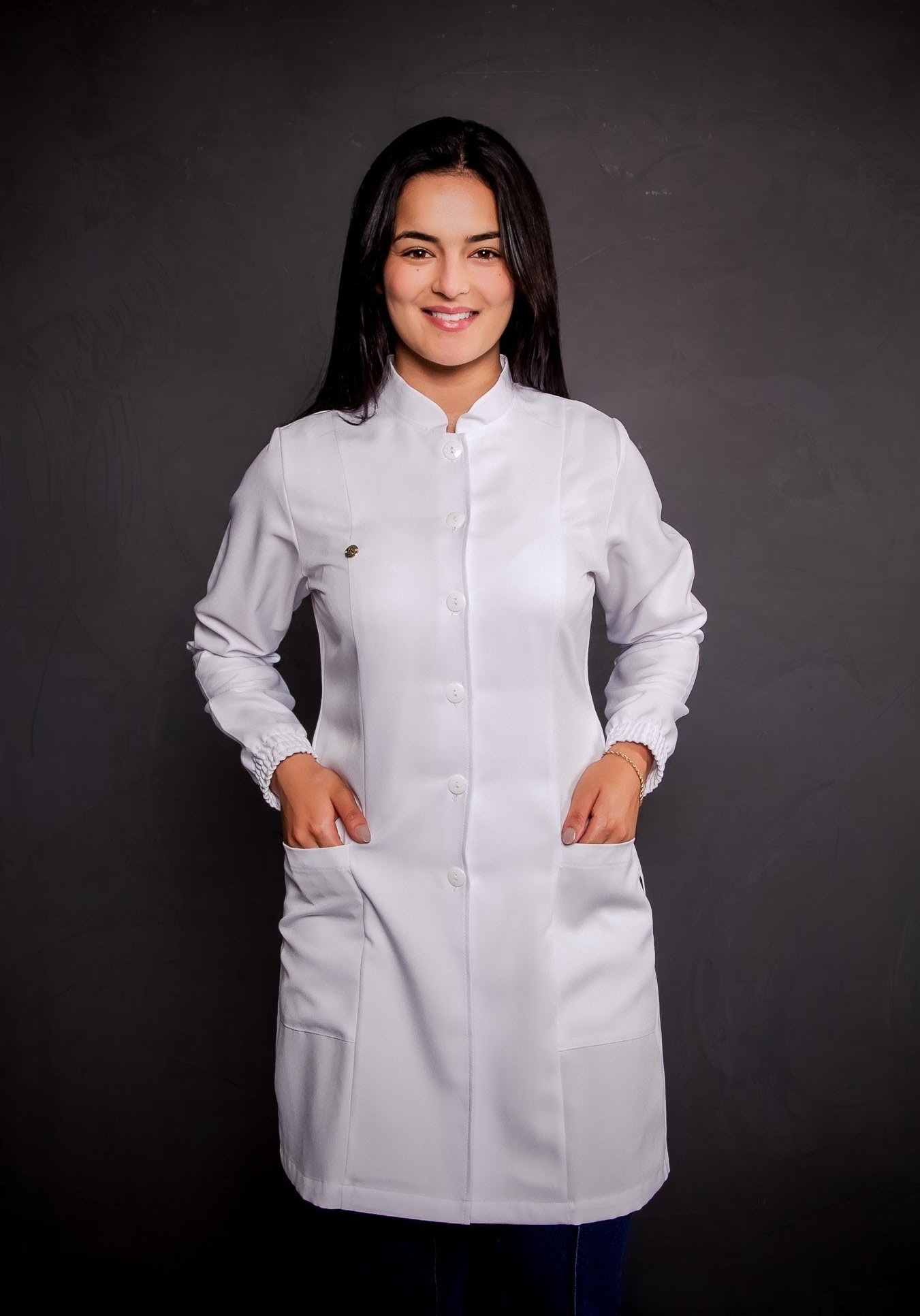 Jaleco Universitário Feminino de botão, manga longa - Branco